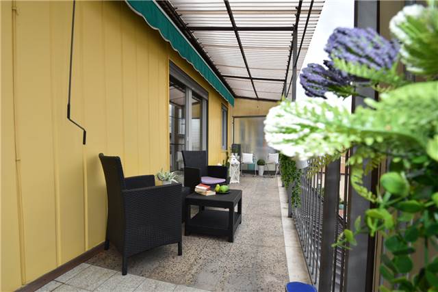 L’attico, libero su due lati e con una superficie commerciale di circa 120 mq, gode di doppia esposizione est-ovest, che garantisce luce naturale tutto il giorno e una splendida vista aperta.